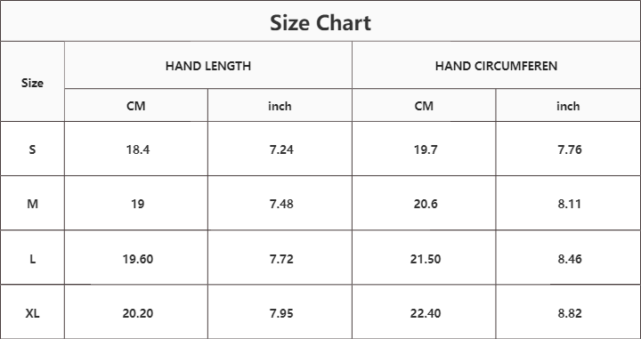 SIZE (cm) HAND CIRCUMFERENCE HAND LENGTH
